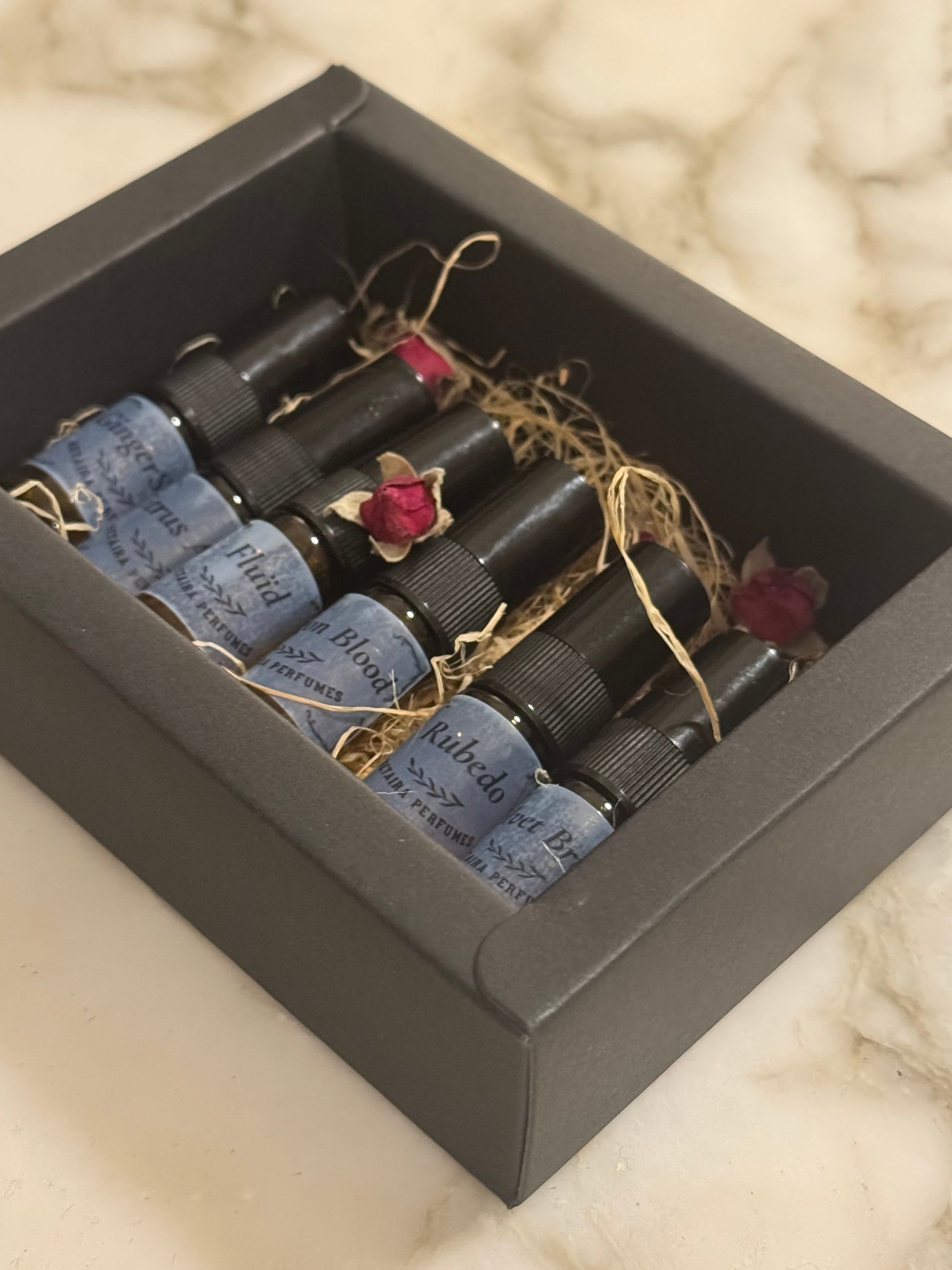 Nuestro Discovery Set ofrece una selección exclusiva de nuestras fragancias artesanales más refinadas, meticulosamente elaboradas con aceites esenciales de alta calidad y composiciones únicas que no encontrarás en ningún otro lugar.